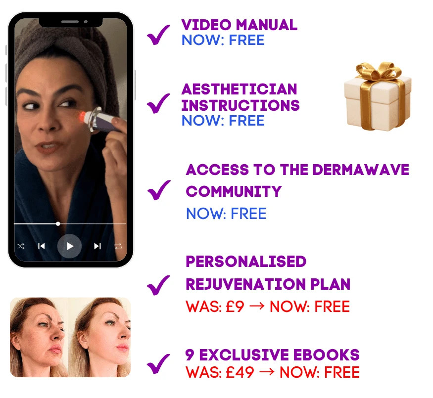 ❤️ When you purchase DermaWave® Pro Rejuvenate, you’ll receive 9 COMPLETE eBooks packed with exclusive skincare secrets that dermatologists don’t share – designed to enhance your treatment even further! ✨